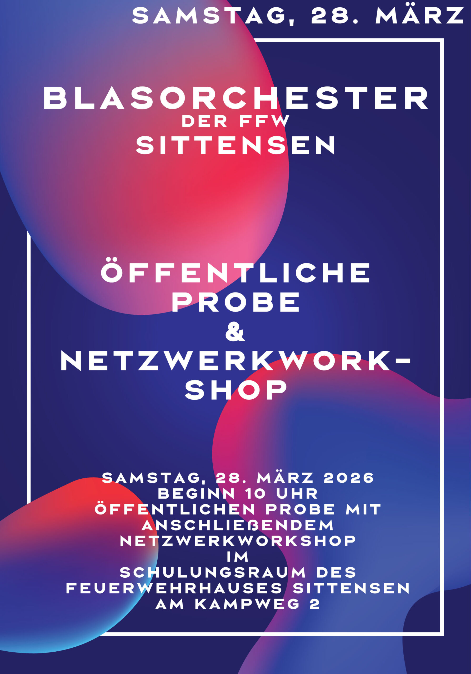 ÖFFENTLICHE PROBE & NETZWERKWORKSHOP 🎺 Blasorchester der FFW Sittensen 🎺 Samstag, 28. März 2026 🎺 Beginn: 10:00 Uhr 🎺 Feuerwehrhaus Sittensen – Schulungsraum Kampweg 2 · 27419 Sittensen Neugierig auf Blasmusik? Dann komm vorbei und [...]